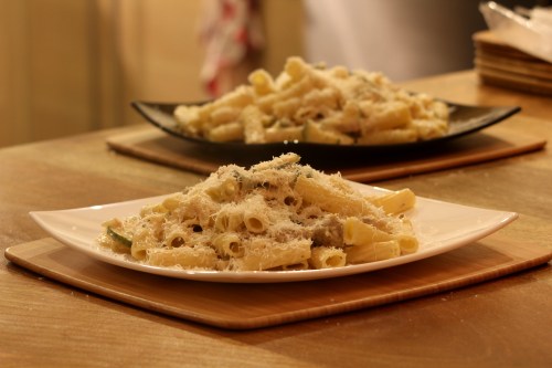 I know what you’re thinking. You’re thinking you won’t like this because mustard is gross. Really, really gross. Seriously, who likes mustard? Definitely not me. I like this pasta though. A lot. And I’m sure you will like this pasta enough to point out something on the tv to whoever you’re eating with and then steal bits off their plate (do you ever eat something too quickly and then you’re jealous that other people still have food left? Sucks.).