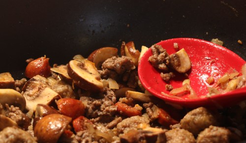It gets better though. No, really. I got home, told Chris what we were having and he responded with “can you add chorizo to it?”. Yup.