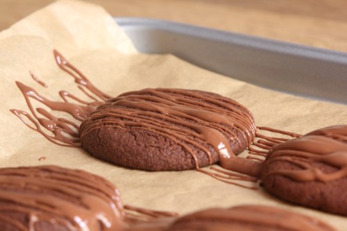 These are chocolatey and melty-ey, especially in this weather (thanks for the help with the introduction, Mum!). They take about five minutes to throw together (after an initial panic about the dough never turning into dough) and twelve minutes to cook. Then you can cover them in melted chocolate and proceed to stuff your face, growling at anyone who attempts to approach the plate of biscuits.