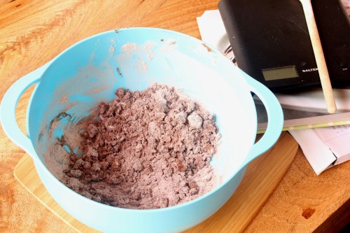 Beat the butter in a large bowl until nice and soft and then sift in all the other ingredients except the chocolate (I’m not sure chocolate would sift that well, and you don’t want to add it yet anyway!).